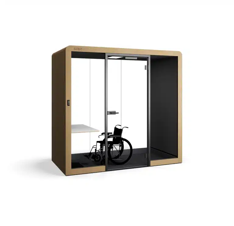 Its ergonomic layout, echo-free acoustic panels, and sound-insulated walls and ceilings make it ideal for focus-intensive work, one-on-one meetings, or group collaboration.